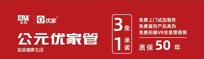 在服务体系构建上,公元旗下高端家装品牌——公元优家,其推出的公元优管家服务,代表公元家装服务的最高标准。其提供“3免1承诺”的售后保障,即免费上门试压服务,进行管道系统检测;免费鉴别产品真伪,现场演示鉴别方法;免费拍摄VR全景管路图,方便日后管路改造;告知“双重质保50年”承诺,并由中国人民保险对产品质量承保,为服务增添厚重的保障。