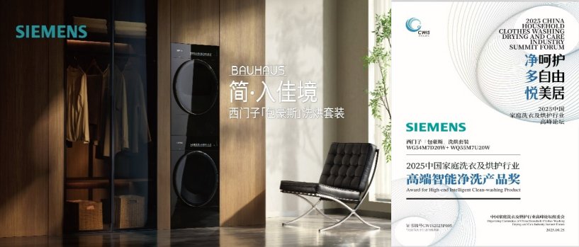 西门子「包豪斯」洗烘套装荣获“2025中国家庭洗衣及烘护行业高端智能净洗产品奖”
